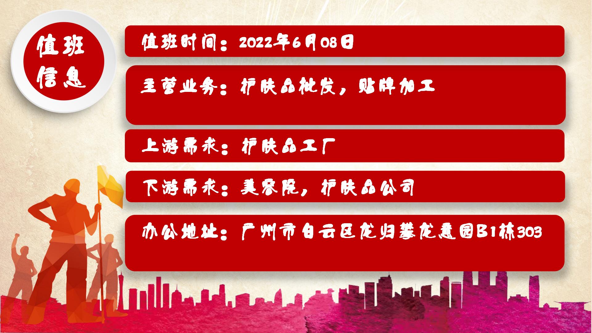 商会办公室值班时间:2022年6月8日