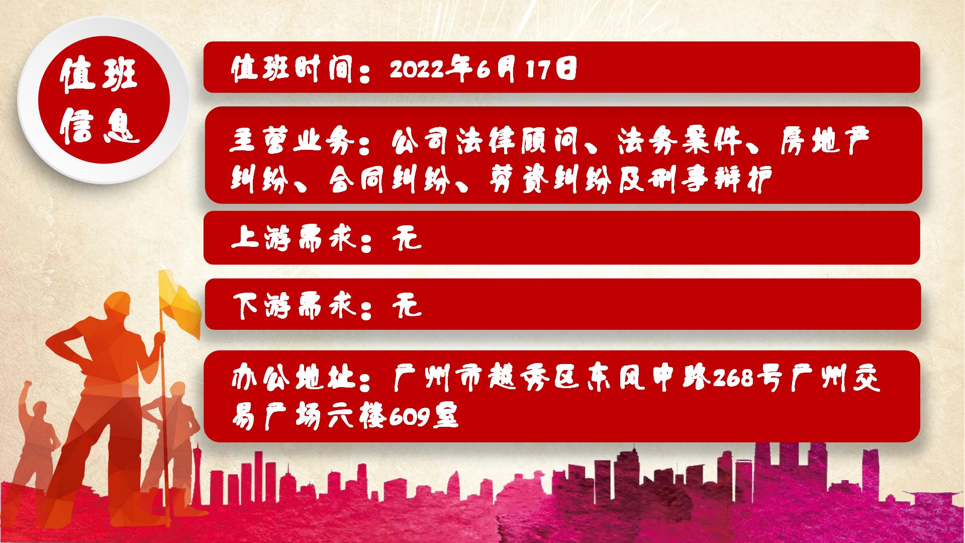 商会办公室值班时间:2022年6月17日