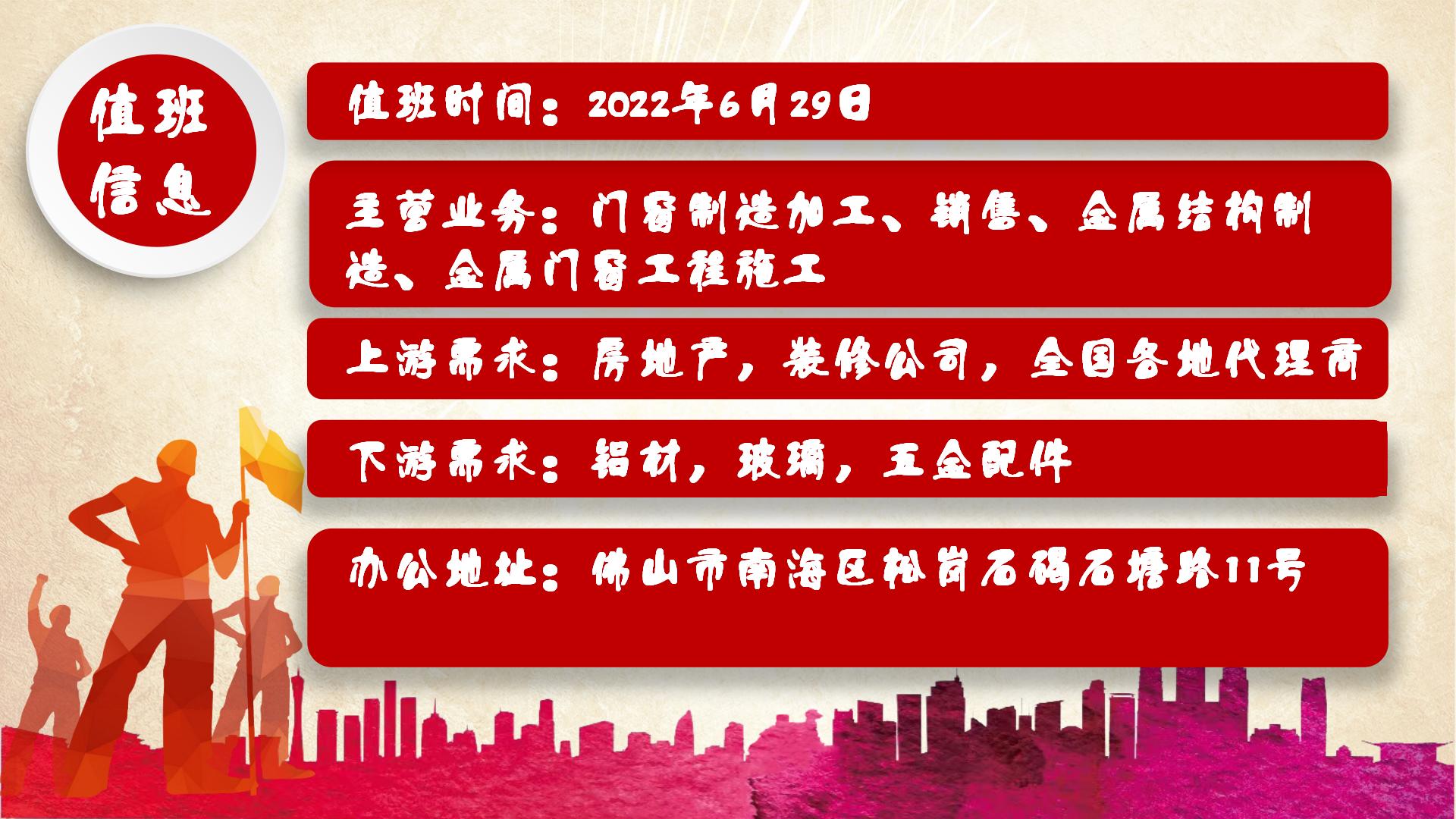 商会办公室值班时间:2022年6月29日