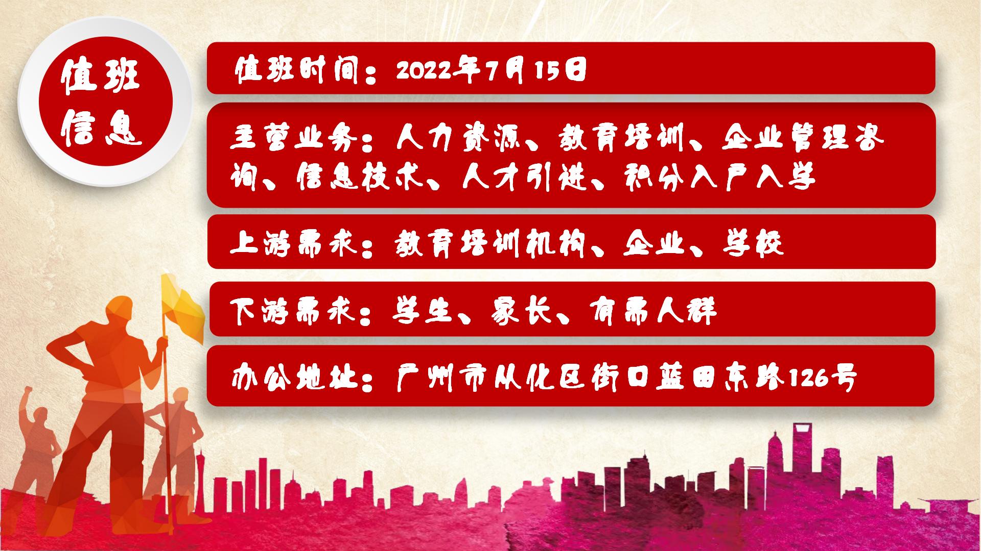 商会办公室值班时间:2022年7月15日