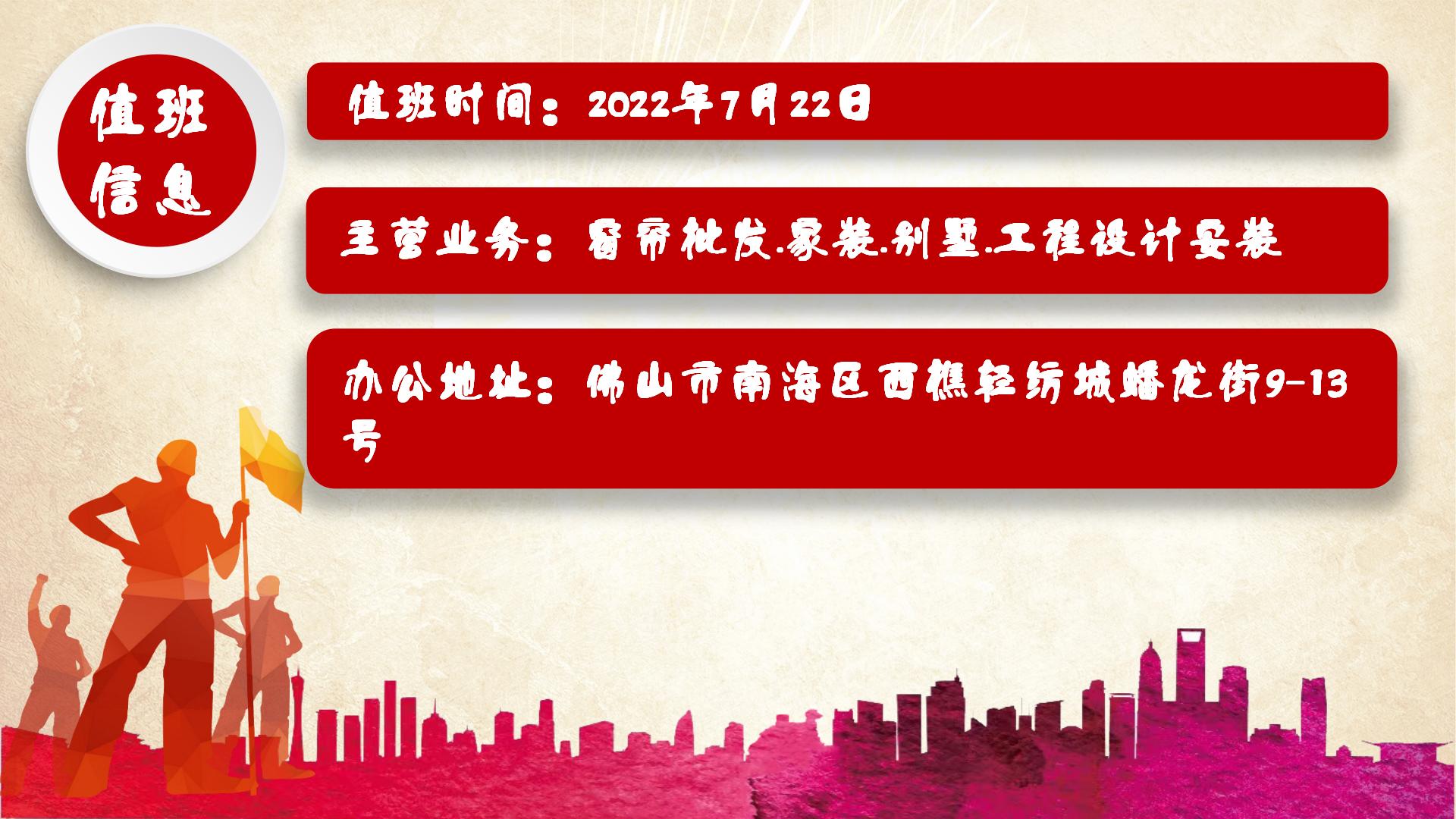 商会办公室值班时间:2022年7月22日