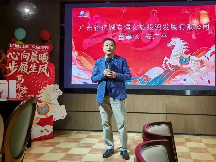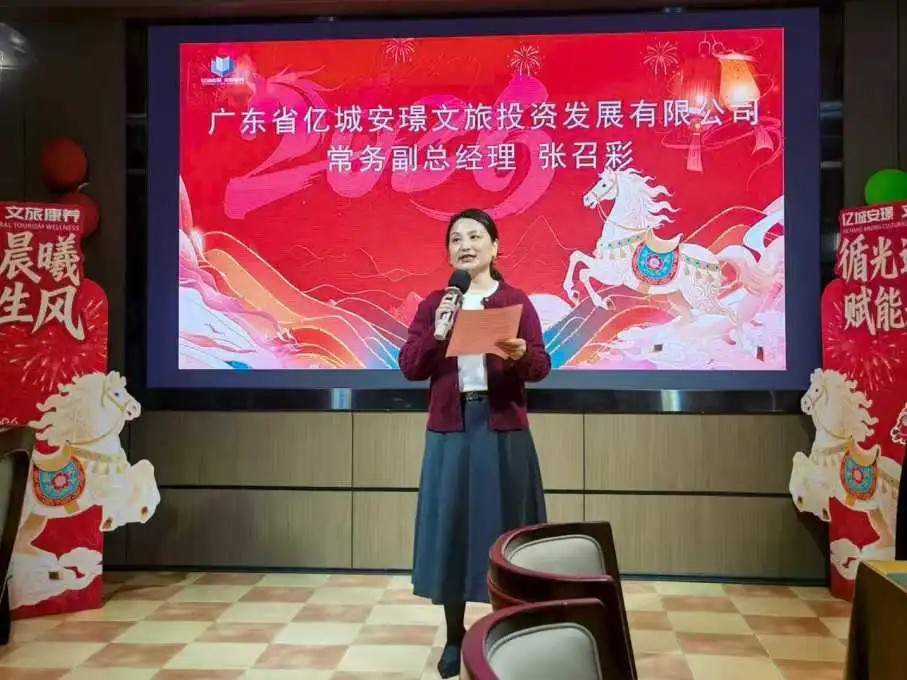 广东省亿城安璟文旅投资发展有限公司常务副总经理张召彩全面回顾了公司2025年在文旅赛道的坚守与突破,梳理了文旅项目推进、团队建设等方面的重点成果,鼓励全体同仁凝心聚力、务实奋进。